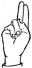 На ћирилици написано РАНИСЛАВА КОЛАРЕВИЋ састоји се из 18 слова [?]. Исписано ћириличном једноручном азбуком за глувонеме: